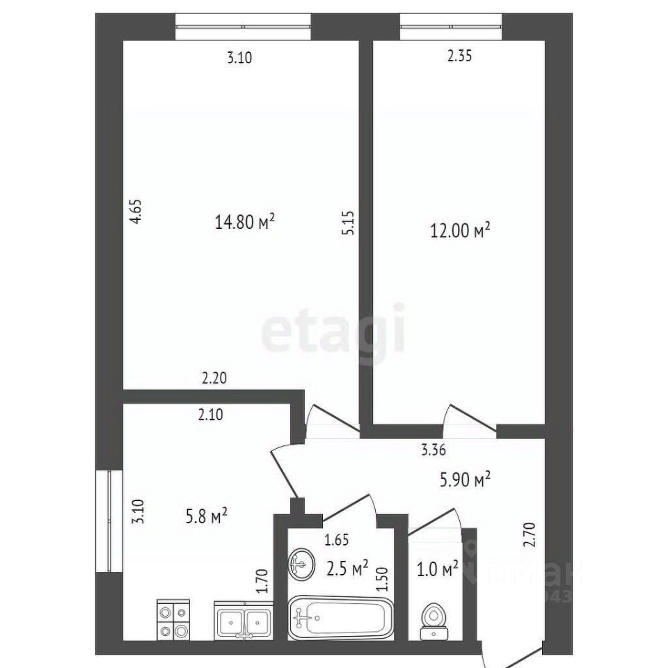 42,8 м²