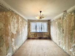 Квартира требует ремонта. Окно в одной комнате пластиковое, остальные деревянные. Лоджия застеклена (деревянная рама). Квартира освобождена от мебели и готова к ремонту.