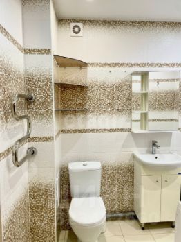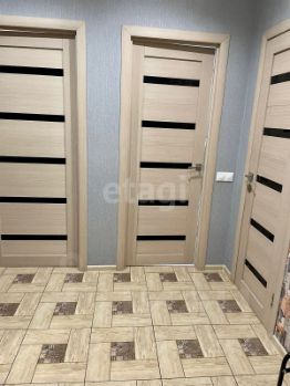 Ремонт делался для себя и исключительно из качественных материалов. Установлены качественные межкомнатные двери, входная металлическая дверь. Двойные пластиковые стеклопакеты. По всей квартире натяжные потолки, на полу в комнате и кухне - качественный ламинат, в прихожей и ванной - теплые полы. Санузел совмещен, отделан плиткой.