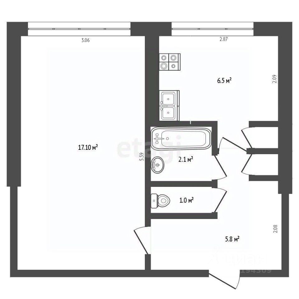 17,1 м²