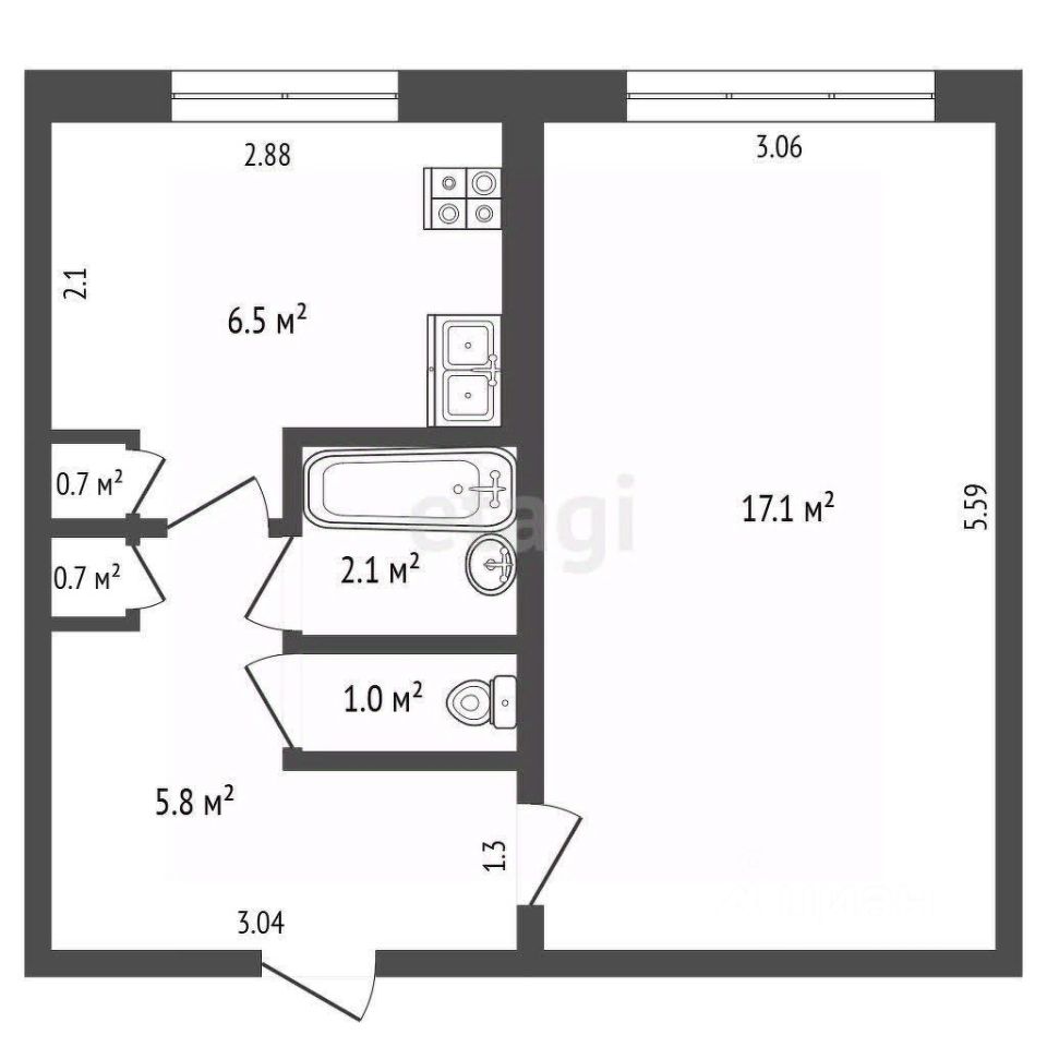 17,1 м²