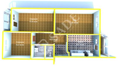 О квартире: Просторные и светлые комнаты (зал 20 м², спальни 17,9 и 13,5 м²). Комнаты изолированные, имеют косметический ремонт, на полу линолеум.