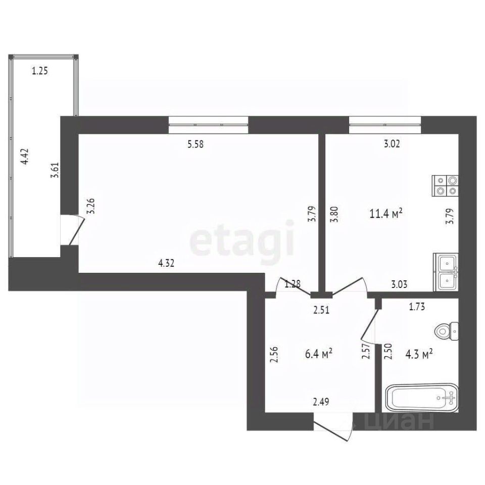 41,1 м²