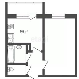 Просторная кухня площадью 9 кв. м. с выходом на балкон, что позволяет удобно организовать зону для приема гостей или хранения вещей. Комната площадью 15 кв. м. подойдет как для спальни, так и для гостиной. Санузел совмещенный.