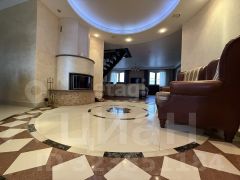 При ремонте использовались только эксклюзивные отделочные материалы, большинство мебели делали на заказ. Пол первого этажа — ламинатная доска, а по центру перед дровяным камином — венецианская мозаика. Кухонная зона и балкон — керамогранит. На втором этаже чистая деревянная доска.