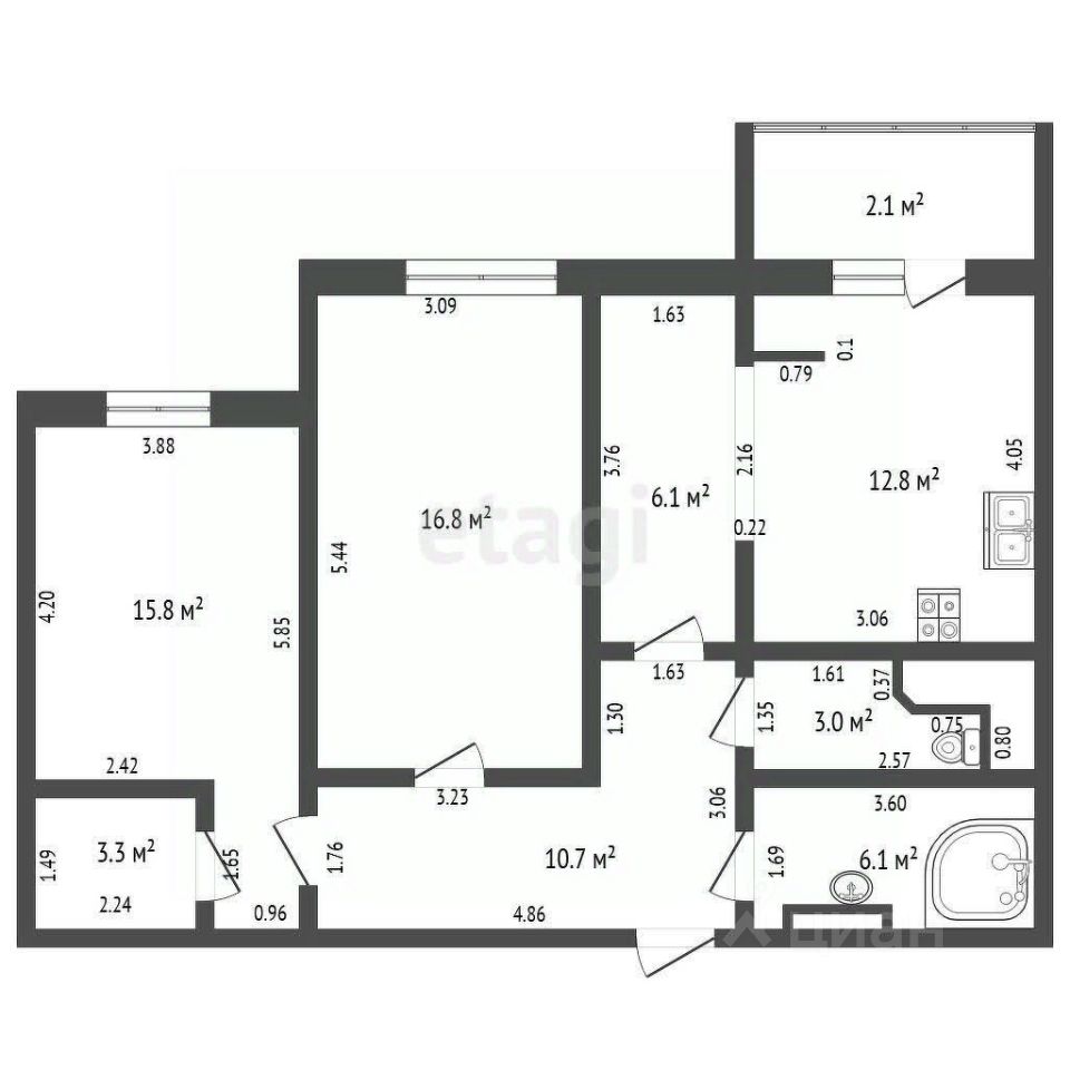 Общая площадь квартиры 78.7кв.м.. Установлен котел - индивидуальное отопление, что позволяет самостоятельно регулировать комфорт в течении всего года и снижает расходы на коммунальные услуги. Две изолированные комнаты 15.8 кв.м. и 16.8 кв.м.. В одной спальне имеется оборудованная просторная кладовая. Выxoд на лоджию с кухни. Окна выходят во двор, на водоем возле стадиона "Старт", детскую и спортивную площадку. Во дворе дома закрытая шлагбаумом парковка. Территория дома и парковки огорожена забором, на территории дома и внутри имеется видеонаблюдение.