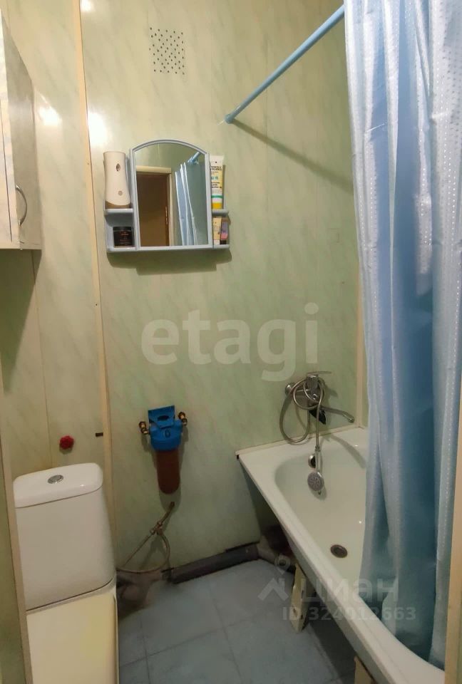 В квартире остается кухонный гарнитур, диван в комнате, стенка, газовая плита и стол. Санузел совмещённый, обшит панелями.