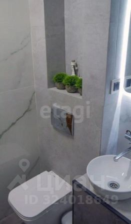 Балкон застеклен пластиковыми окнами, что позволяет использовать его как дополнительное полезное пространство. В санузле выполнен полный цикл отделочных работ: стены и пол облицованы керамической плиткой, установлена новая сантехника. Санузел совмещен.