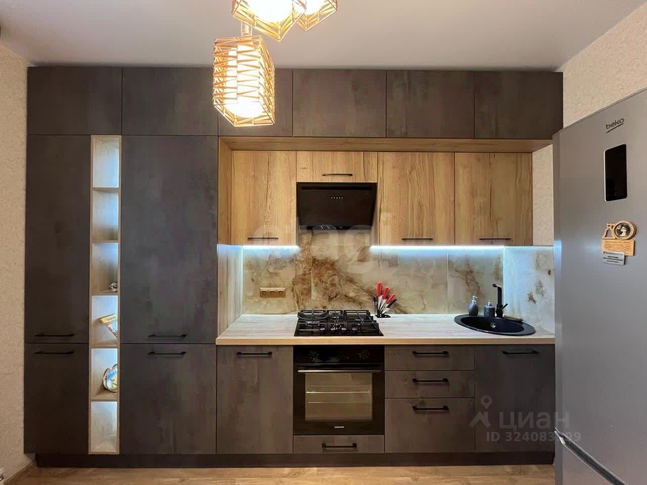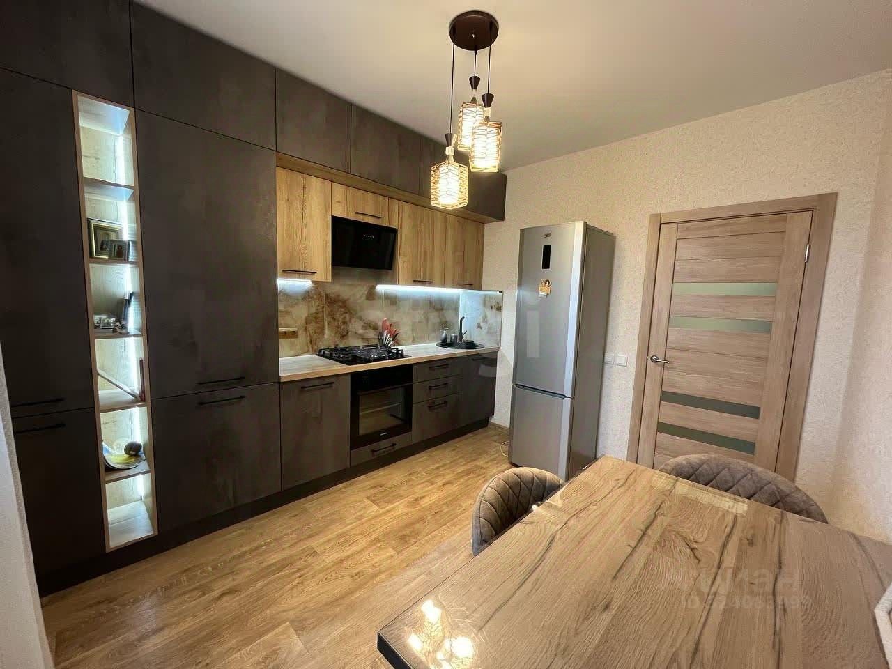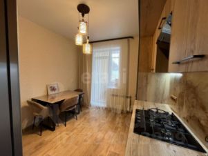 В квартире сделан современный качественный ремонт. Выравнены стены и пол. Окна пластиковые. Лоджия застеклена пластиковой рамой. Новая входная металлическая дверь. Установлены новые современные межкомнатные двери. Новая электрика, трубы, сантехника. Потолки натяжные с встроенными точечными светильниками. Напольное покрытие в комнате — ламинат, в коридоре и кухне — плитка керамогранит. Санузел отделан плиткой (сантехника новая, акриловая ванна), сделан теплый пол. Современные радиаторы отопления. Установлены счетчики на холодную воду, а также газовый счетчик.