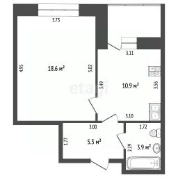 На лестничной площадке 6 квартир. Отопление индивидуальное, установлен двухконтурный котел. Комнаты изолированы. Общая площадь без учета лоджии — 38,7 кв. м. Комната — 18,5 кв. м. Кухня — 11 кв. м. Холл — 5,3 кв. м. Санузел (совмещен) — 3,9 кв. м. Лоджия застеклена (выход на лоджию с кухни) — 3,2 кв. м. Высота потолков - 2,6 м. В квартире остается вся мебель.