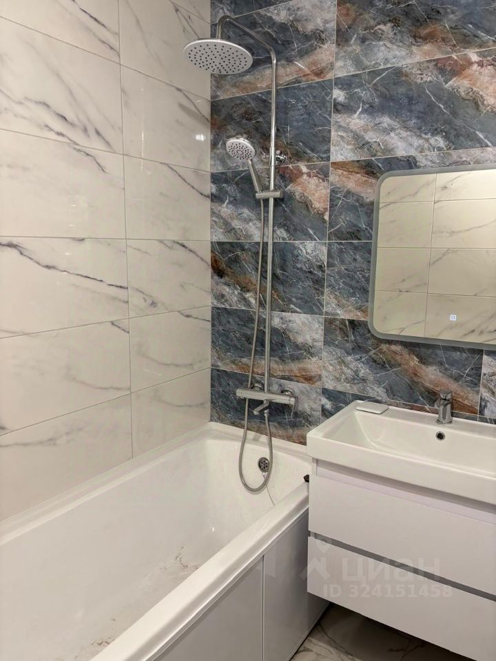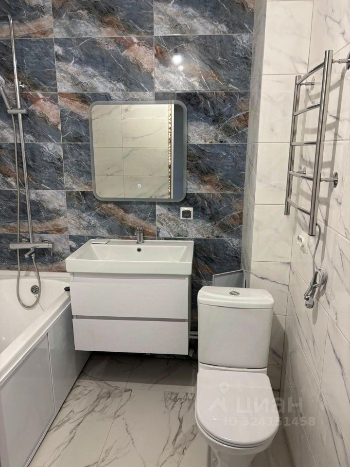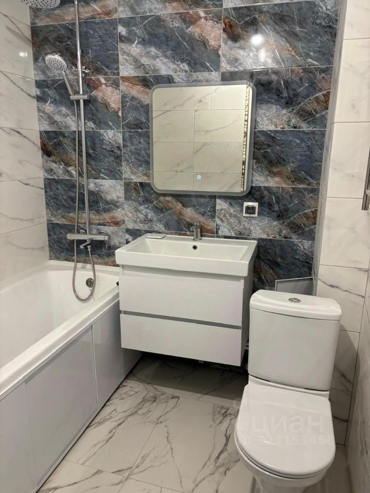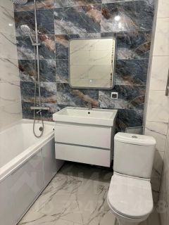 Санузел совмещенный, в идеальном состоянии, кафель, на полу керамогранит, есть место под стиральную машинку, был заменен полотенцесушитель..