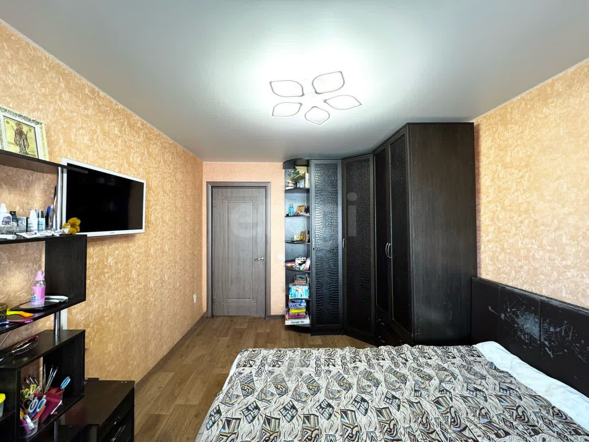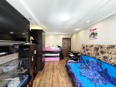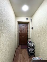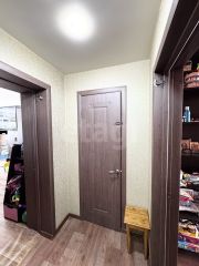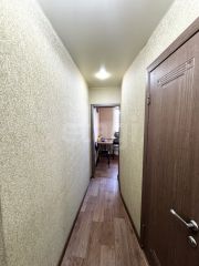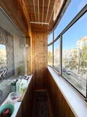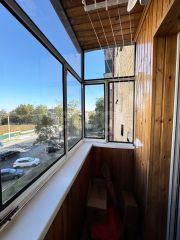 В квартире сделан косметический ремонт: установлены пластиковые окна, натяжные потолки, линолеум по всей квартире. Комнаты изолированные, выходят на разные стороны. В одной из комнат есть выход на застекленный балкон, обшитый вагонкой. Между комнатами гардеробная.