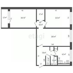 Общая площадь 64,3 кв. м грамотно распределена между двумя изолированными комнатами 14,3 и 13,3 кв. м, что обеспечивает приватность, и большой гостиной 18,5 кв. м для отдыха и приема гостей. Удачная ориентация окон на северо-восток и юго-запад гарантирует благоприятный инсоляционный режим в течение всего дня.