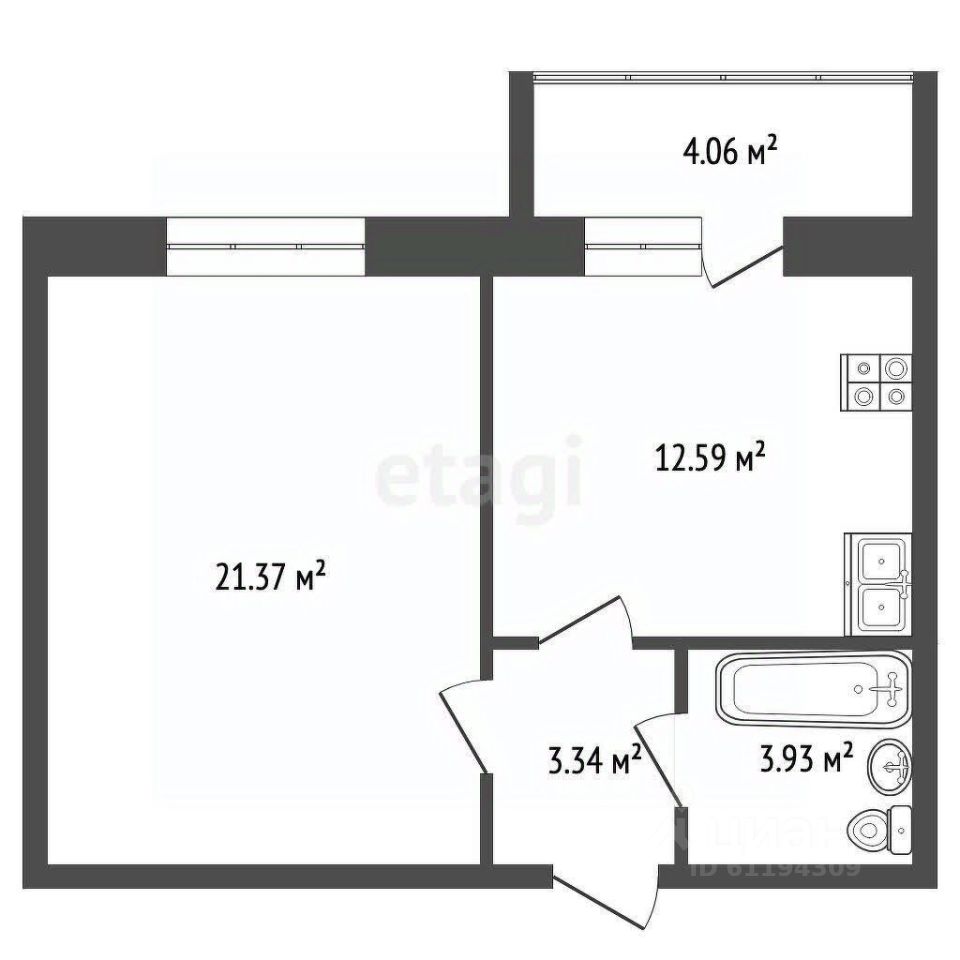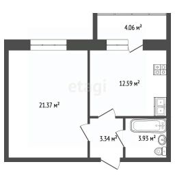 Планировка продумана и комфортна: просторная кухня 12,59 м², большая светлая комната 21,37 м² с правильными пропорциями, где легко расставить мебель и создать уют. Из кухни предусмотрен выход на уютный балкон правильной формы площадью 4 м² — идеальное место для утреннего кофе или летнего вечера с книгой. Окна выходят на юго-запад, поэтому квартира наполнена мягким солнечным светом большую часть дня.
