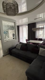 В квартире выполнен дизайнерский ремонт с гардеробной комнатой, который выполнен с использованием стильных и качественных материалов. Мебель и бытовая техника BOSH остается покупателю. Для удобства предусмотрено более одного санузла, что актуально для большой семьи или при приеме гостей.