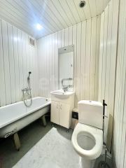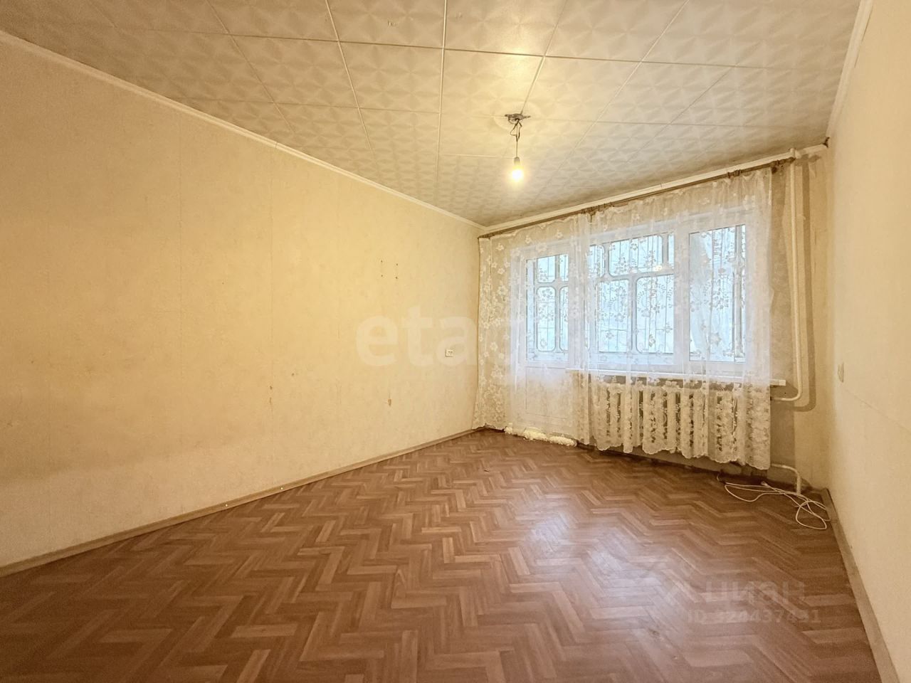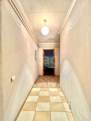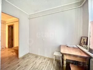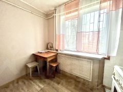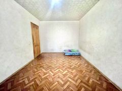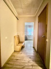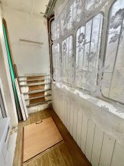 Металлическая входная дверь. Окна пластиковые. Квартира требует ремонта. Напольное покрытие: в комнате — линолеум, на кухне и прихожей — ламинат, во входной группе — плитка. Выход на лоджию из комнаты. Лоджия застеклена — металлорама. На лоджии имеется лаз в погреб. Санузел отделан пластиковыми панелями. Установлены счетчики на газ и холодную воду.