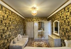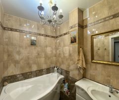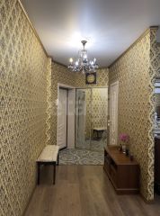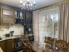 Ремонт выполнен в сдержанном классическом стиле с использованием добротных материалов: кухонный гарнитур из массива дуба, качественные двери и потолочный багет. В квартире установлена система кондиционирования.