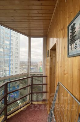 Квартира обладает значительным местом для хранения: большая угловая кладовая до потолка и отдельная гардеробная зона в прихожей с раздвижными зеркальными дверями. Центром жилого пространства является объединенная зона гостиной и кухни площадью около 40 кв. м. с выходом на большой балкон, оборудованный панорамным остеклением и отделкой из дерева. Из этой же зоны и одной из двух спален есть выход на второй балкон с видом на Макаровский монастырь. Планировка обеспечивает удобное зонирование для жизни семьи.