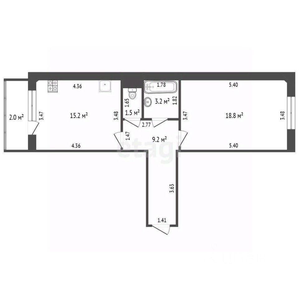 Продается просторная 1-комнатная квартира в районе Светотехстроя, 47,9 кв. м.