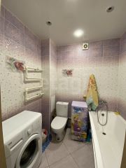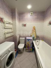 Санузел совмещенный, отделанный плиткой. Имеется застекленный балкон (алюминиевая рама) с выходом из комнаты. На кухне установлено пластиковое окно, в спальне — деревянное.