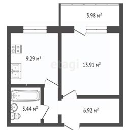 Практичная планировка включает просторный коридор с гардеробной зоной, изолированную кухню площадью 9.3 м² и уютную комнату 14 м² с выходом на застекленный балкон.