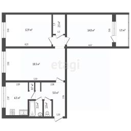 Общая площадь: 64 кв. м (без учета лоджии).
