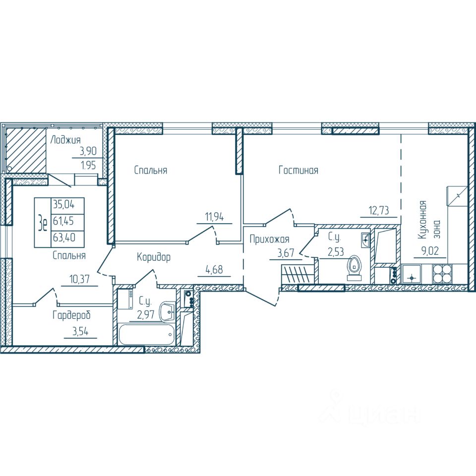 63,4 м²