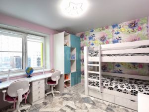 Площадь комнат: спальная 15 кв.м, детская 13 .м, рабочая 10 кв.м.