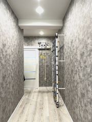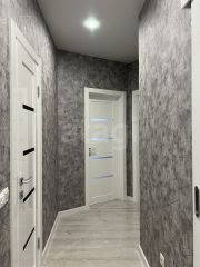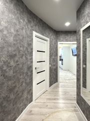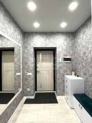 В квартире сделан современный качественный ремонт, пластиковые окна, натяжные потолки, на полу: на кухне 20 кв. м в рабочей зоне кафель + теплые полы, в зоне отдыха ламинат, во всех комнатах также везде положен ламинат, в прихожей кафель + система теплых полов.