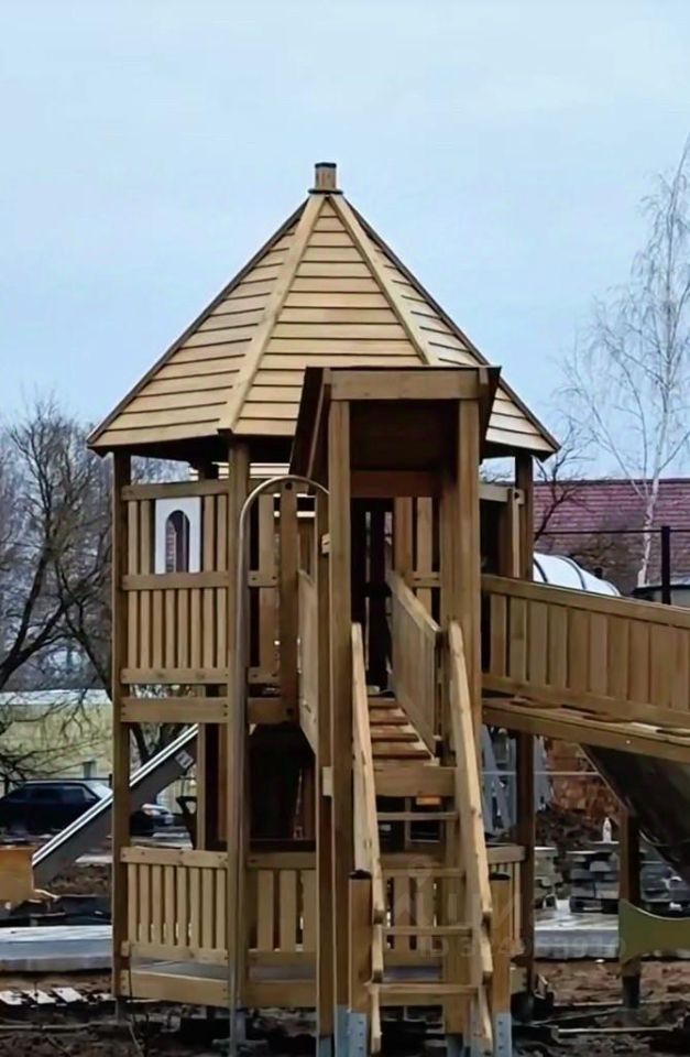 Красивый благоустроенный двор с детскими и спортивными площадками, парковкой, зонами отдыха и озеленением.