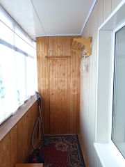 - большая застекленная лоджия, отделанная деревянной вагонкой со встроенными шкафами.