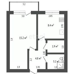 Общая площадь квартиры составляет 33.5 кв.м., где 8.4 кв.м. отведено под кухню. Расположенная на втором этаже двухэтажного кирпичного дома 1994 года постройки, она предлагает уединенность и спокойствие, вдали от городской суеты.