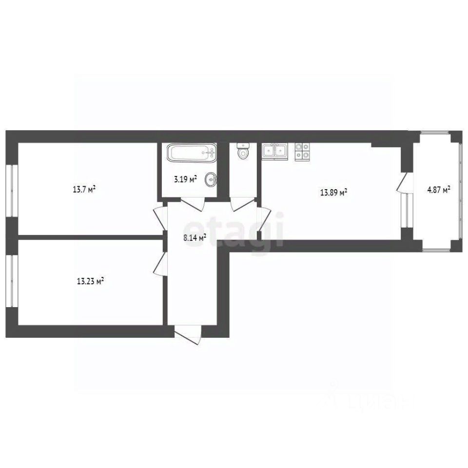В продажу поступила замечательная двухкомнатная квартира площадью 54,8 м² в современном КОМПАКТНОМ кирпичном многоквартирном доме. Стоимость НИЖЕ, чем у застройщика! Пятый этаж пятиэтажного дома. Квартира абсолютно новая, без отделки. Дом совсем недавно сдан. Окна выходят в обе стороны дома. Современная планировка.