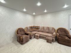 В квартире выполнен современный ремонт, который сразу же привлечет ваше внимание. Стены идеально ровные, оклеены обоями светлых тонов, создающими атмосферу уюта и простора. Потолки натяжные, выполнены в белом цвете, а точечные лампы добавляют изысканности и создают уютный свет. Полы покрыты качественным ламинатом, что делает интерьер еще более привлекательным.