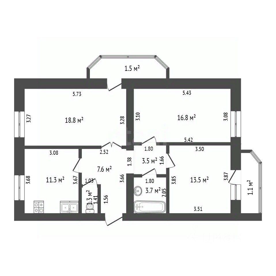 Продается просторная 3-комнатная квартира площадью 76,5 кв. м на третьем этаже современного кирпичного дома.