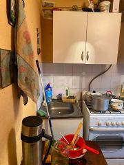 Несмотря на то, что квартира требует ремонта, это представляет возможность создать пространство, соответствующее вашим вкусам и потребностям. Окна деревянные. Совмещенный санузел — это стандартное решение для квартир такой площади.
