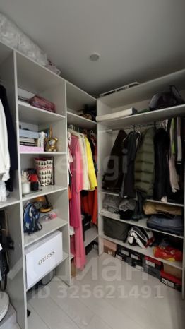 Просторная комната правильной формы площадью 19,5 м² имеет практичное напольное покрытие, натяжной двухуровневый потолок, кондиционер и удобную гардеробную с продуманной системой хранения.