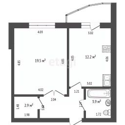 Кухня размером 12,23 м² функциональна и оснащена выходом на застекленный балкон.