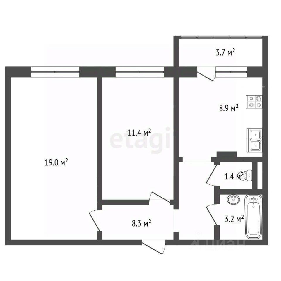 Расположена на пятом этаже десятиэтажного панельного дома в районе Химмаш по адресу: ул. Косарева, 119. Планировка практичная и комфортная: две изолированные комнаты площадью 19 и 11,4 кв. м., просторная кухня в 10 кв. м. с выходом на балкон и раздельный санузел. Квартира не угловая, окна выходят на солнечную сторону, что обеспечивает хорошую естественную освещенность.