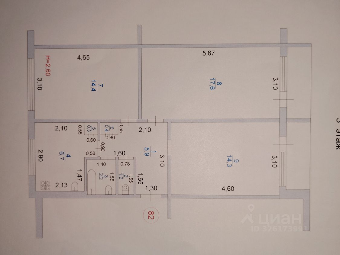 Продается просторная трехкомнатная квартира площадью 63 кв. м, расположенная на 3 этаже 5-этажного панельного дома, построенного в 1979 году. Жилая площадь составляет 40 кв. м, а кухня — 6.7 кв. м. Высота потолков — 2.6 метра. Окна выходят как на улицу, так и во двор, что обеспечивает хорошую освещенность в течение дня.
