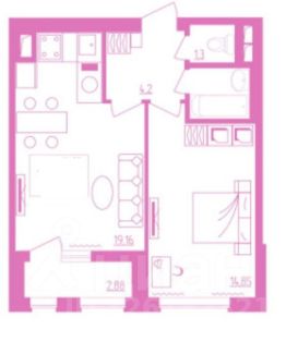 Продается квартира на среднем этаже в новом современном 18 -ти этажном доме комфорт-класса. Квартира общей площадью 44 кв.м. с просторной кухней - 19,16 кв.м., комнатой- 14,85 кв.м., раздельным санузлом и входной зоной- 4,2 кв.м.