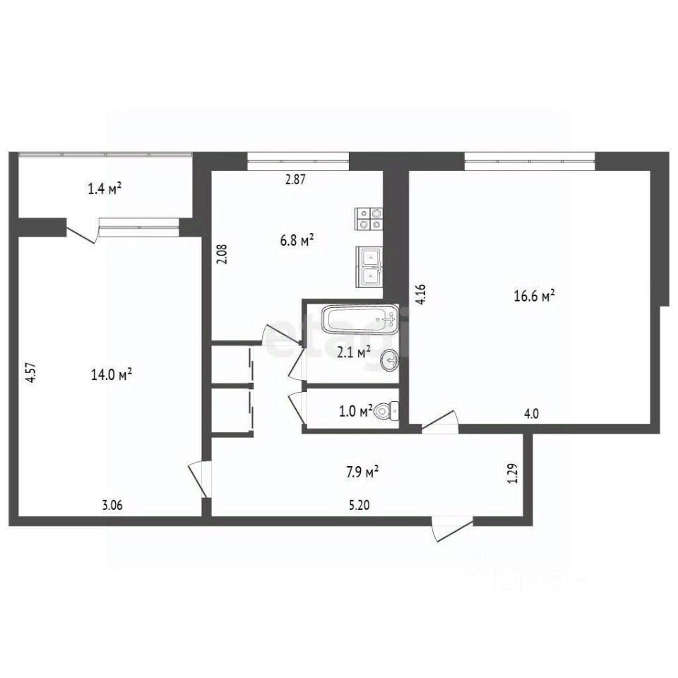 Объект имеет удобную планировку: две изолированные комнаты площадью 16 и 14 кв. м, раздельный санузел и кухня 6,8 кв. м. Одна из комнат имеет выход на балкон. Квартира не угловая, теплая!
