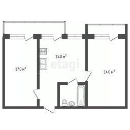 Этаж 9/9 (над верхним жилым этажом технический). Площадь: общая площадь составляет 62 квадратных метров. Включает просторную кухню-гостиную площадью 22 метра, две комнаты размерами 17 и 14 метров, уютную ванную комнату площадью 7,5 метров.