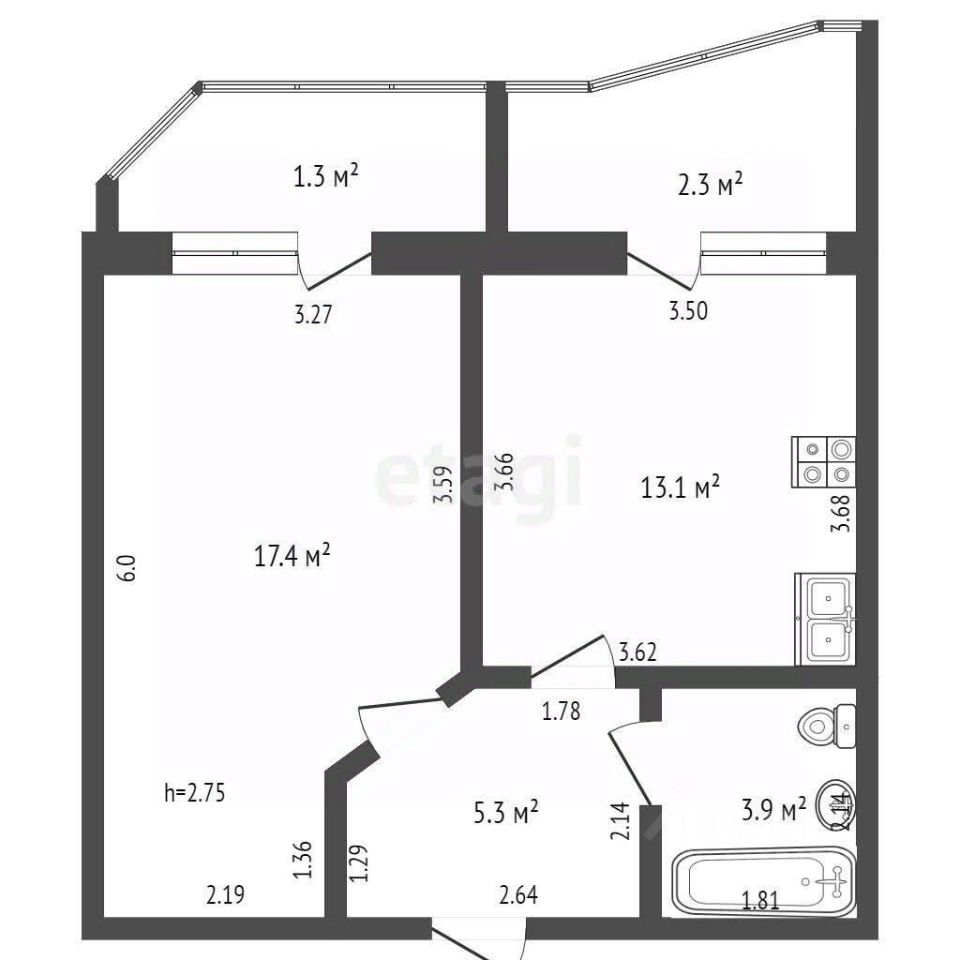 Общая площадь 39,5 м2.