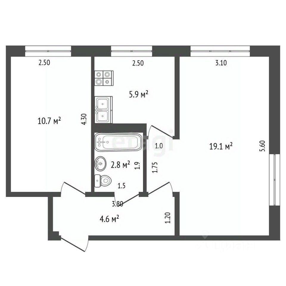 Преимуществом данной квартиры является удачная планировка, изолированная спальня 10,7 кв. м и гостиная 19,1 кв. м с выходом на застекленный балкон, что обеспечивает комфортное проживание для семьи.