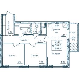 56,93 м²