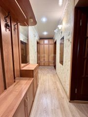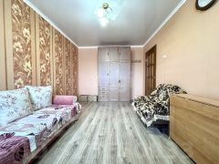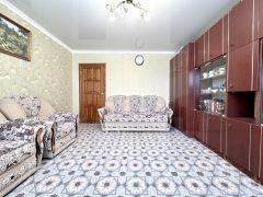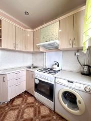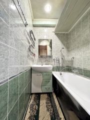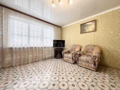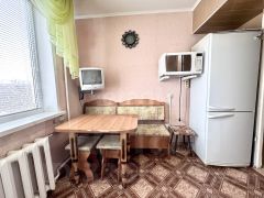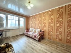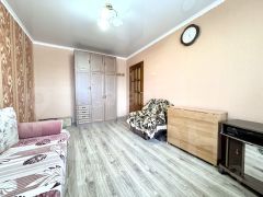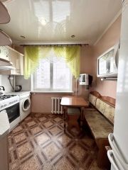 Квартира в хорошем состоянии. По всей квартире натяжные потолки. Напольное покрытие в спальне и прихожей - ламинат, в остальных помещениях линолеум, окна пластиковые. Установлены хорошие межкомнатные двери, качественная металлическая входная дверь. Балкон застеклен. Санузел раздельный, выложен кафелем. Кухня 6,5 кв. м, где новым владельцам остается кухонный гарнитур.