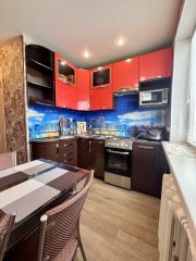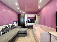 Объект в хорошем состоянии — установлены пластиковые окна, натяжные потолки со светодиодным освещением. На полу в комнате уложен качественный ламинат, на кухне и в прихожей — линолеум. Санузел совмещенный, выложен плиткой.