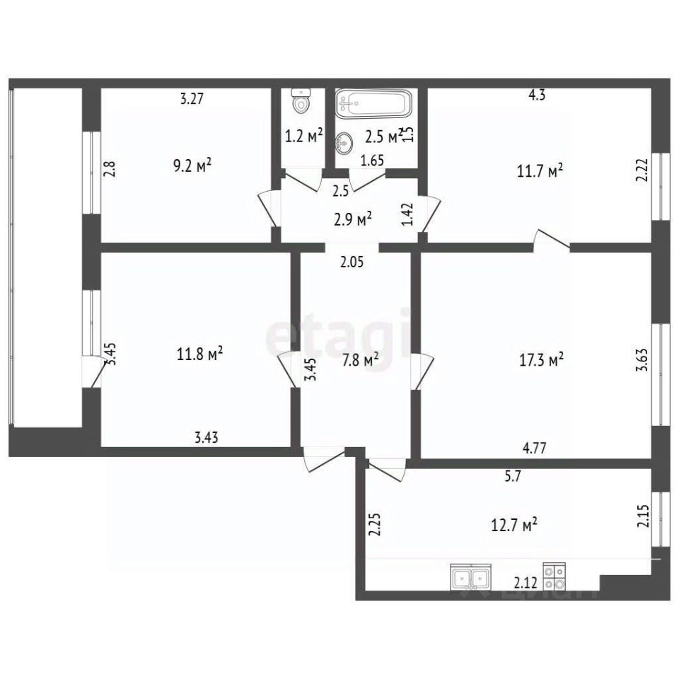 - Количество комнат: 4 комнаты