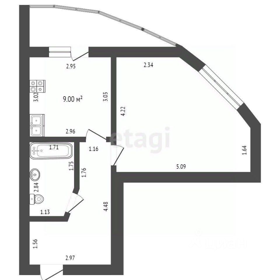 Общая площадь 39 м2.